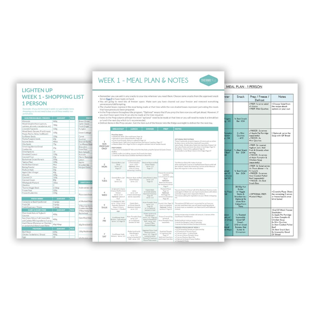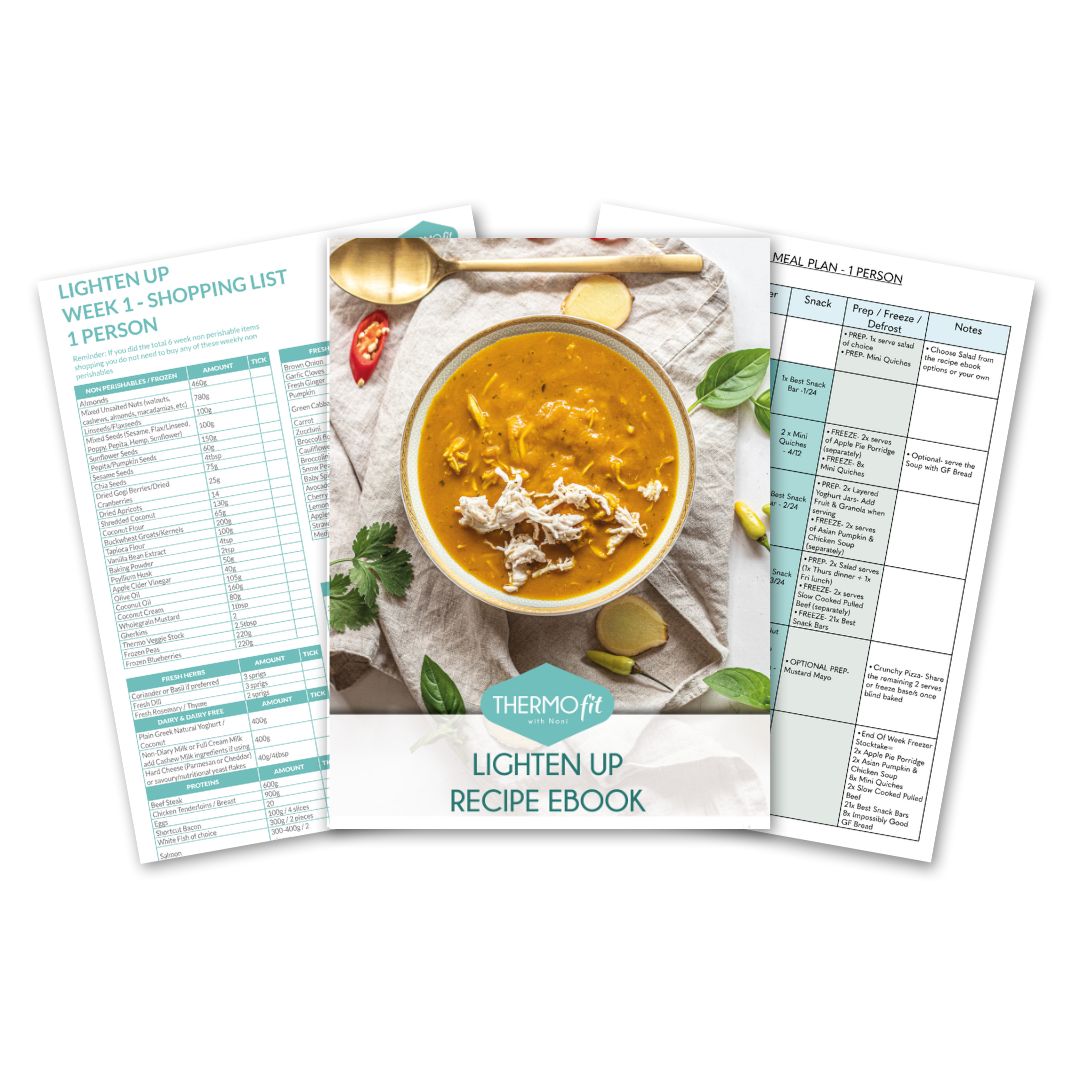 All Lighten Up recipes are gluten-free, grain-free, refined sugar-free and the dairy is optional. They're made from whole foods and packed with protein, fiber and nutrients. Being low in carbs and containing moderate amounts of healthy fats, they offer anti-inflammatory and anti-bloating benefits.