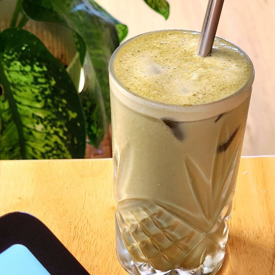 • Fill a glass with ice and pour the matcha mixture over the top. Serve immediately.