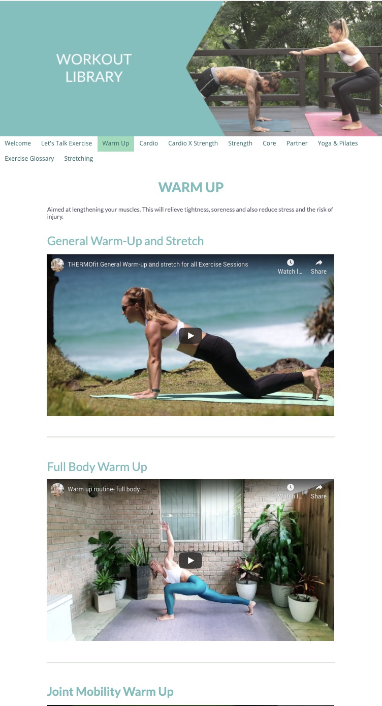 Choose from Cardio, Cardio X Strength, Strength, Core, Partner, Yoga & Pilates. There are also some great educational videos about exercise and how to get the best results from the time and energy you spend exercising.